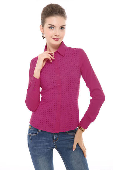 Яркая повседневная модель: малиновая блузка с длинным рукавом. Блузка выполнена из двух видов ткани, верхняя - хлопок. Модель дополнит любой Ваш образ как повседневный, так и официальный.